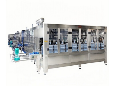 Se utiliza para la producción de agua en envases de 5 galones. Se compone principalmente de los siguientes equipos: máquina elevadora de botellas, descapsuladora, cepilladora interior y exterior, máquina llenadora, máquina retractiladora de tapas, etc.