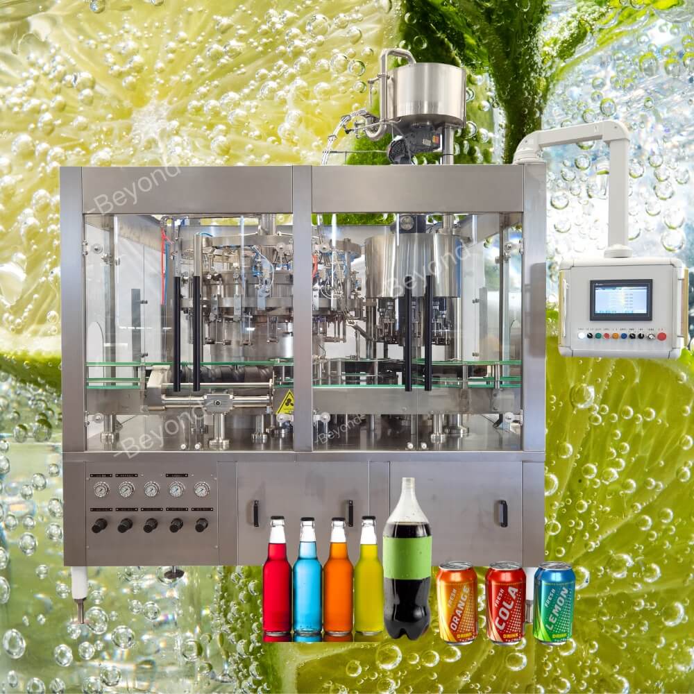 - Se utiliza principalmente para lavar, llenar y sellar bebidas carbonatadas, como refrescos, refrescos de cola, té helado, agua con gas, etc.
