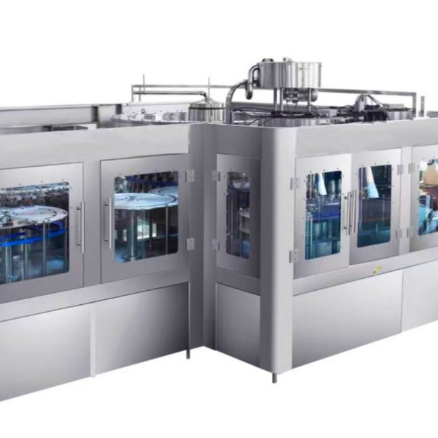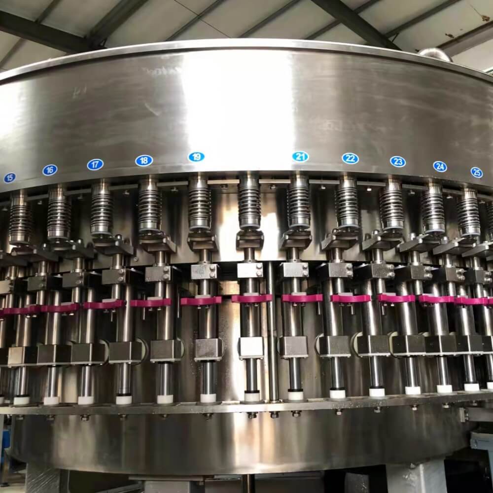 La máquina llenadora de botellas de agua 72-72-18 es una unidad monobloque de alta eficiencia que integra 72 cabezales de enjuague, 72 cabezales de llenado y 18 cabezales de taponado. Diseñada para líneas de embotellado de agua mineral o purificada a gran escala, garantiza una producción rápida, estable e higiénica de hasta 24 000 botellas por hora.