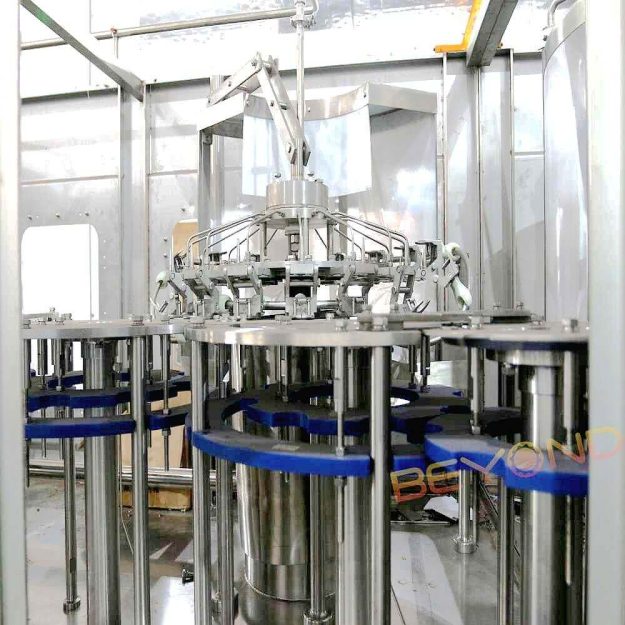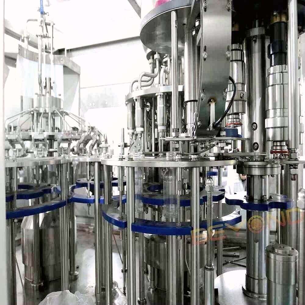 During filling, each bottle is positioned precisely beneath the filling valve and then lifted upward by a pneumatic cylinder to create a tight seal between the bottle neck and the filling nozzle. This vertical motion is synchronized with valve operation to ensure a completely enclosed transfer of liquid with no splashing or foaming.